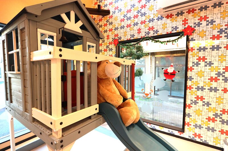 特設滑り台~広い遊び場、絵本もいっぱい!